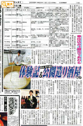 | 体験記&公開造り酒屋紹介 (2008/1/11 日刊ゲンダイ) ![]() |